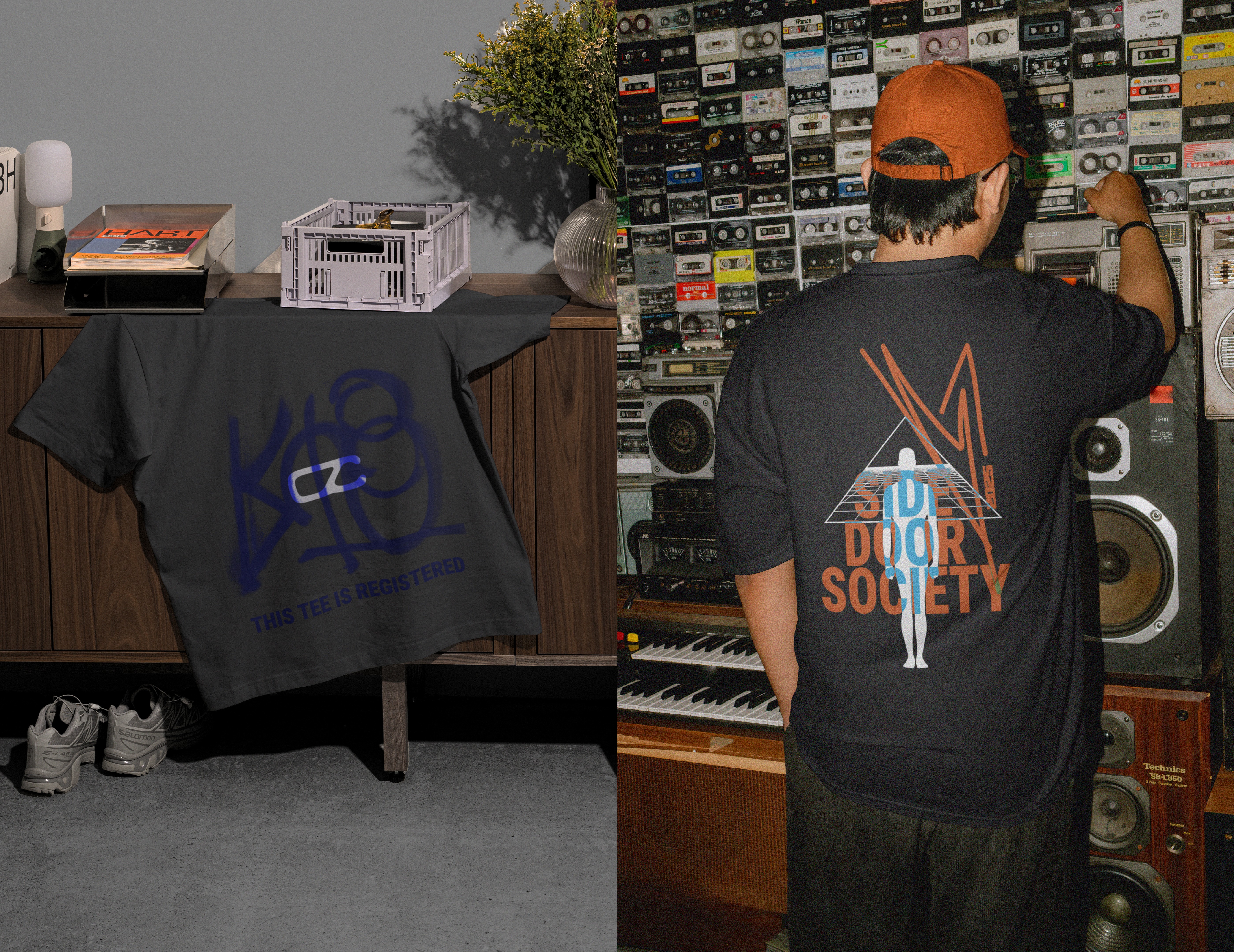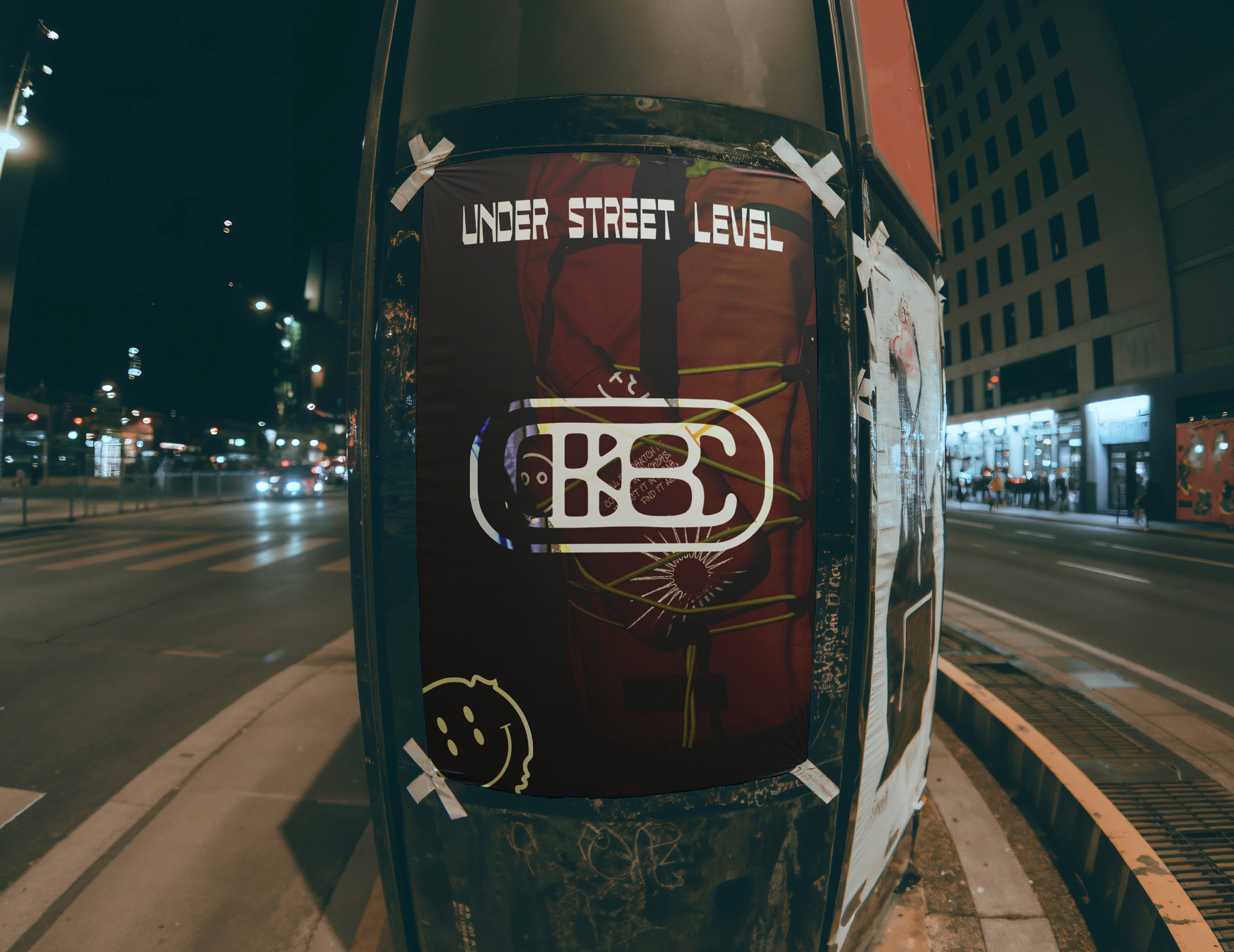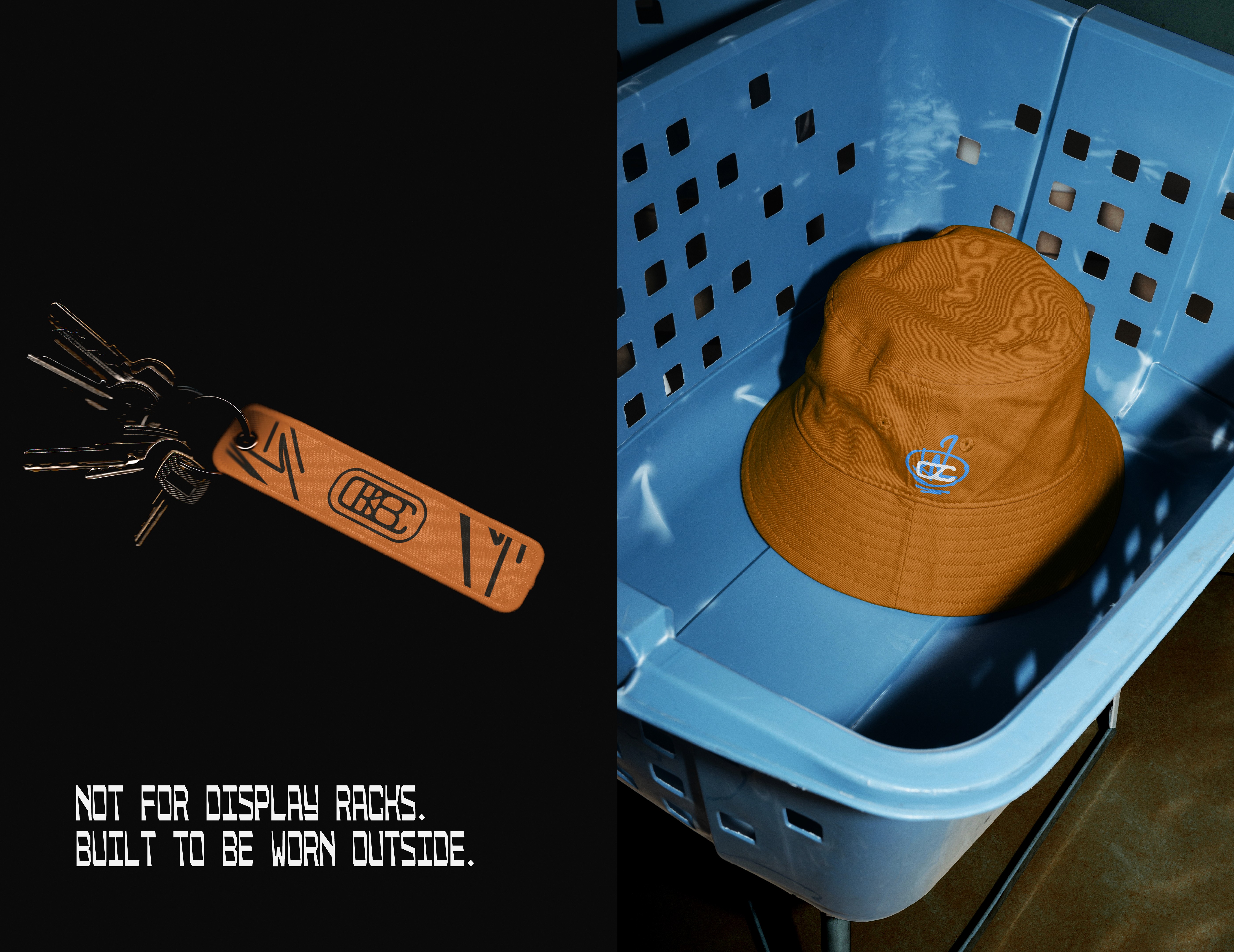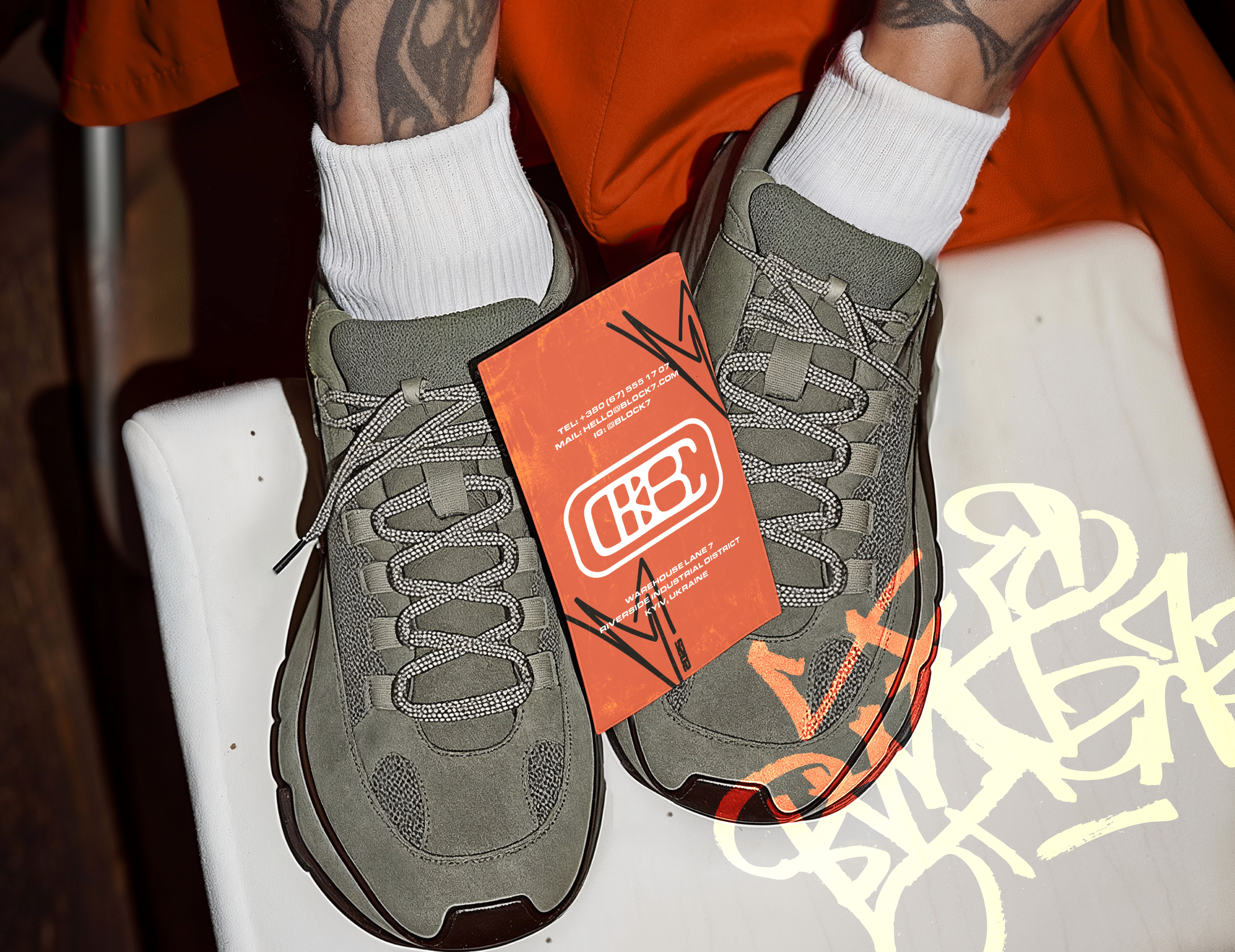 BLOCK 7 is a streetwear label and semi-basement showroom hidden in the Riverside Industrial District in Kyiv. The brand is built on rough textures, bold type and the feeling of walking through the city after dark — when neon hits concrete and every wall is a canvas. The visual system for BLOCK 7 is built around a capsule-shaped monogram, heavy typography and a limited palette of concrete grey, burnt orange and dirty black.