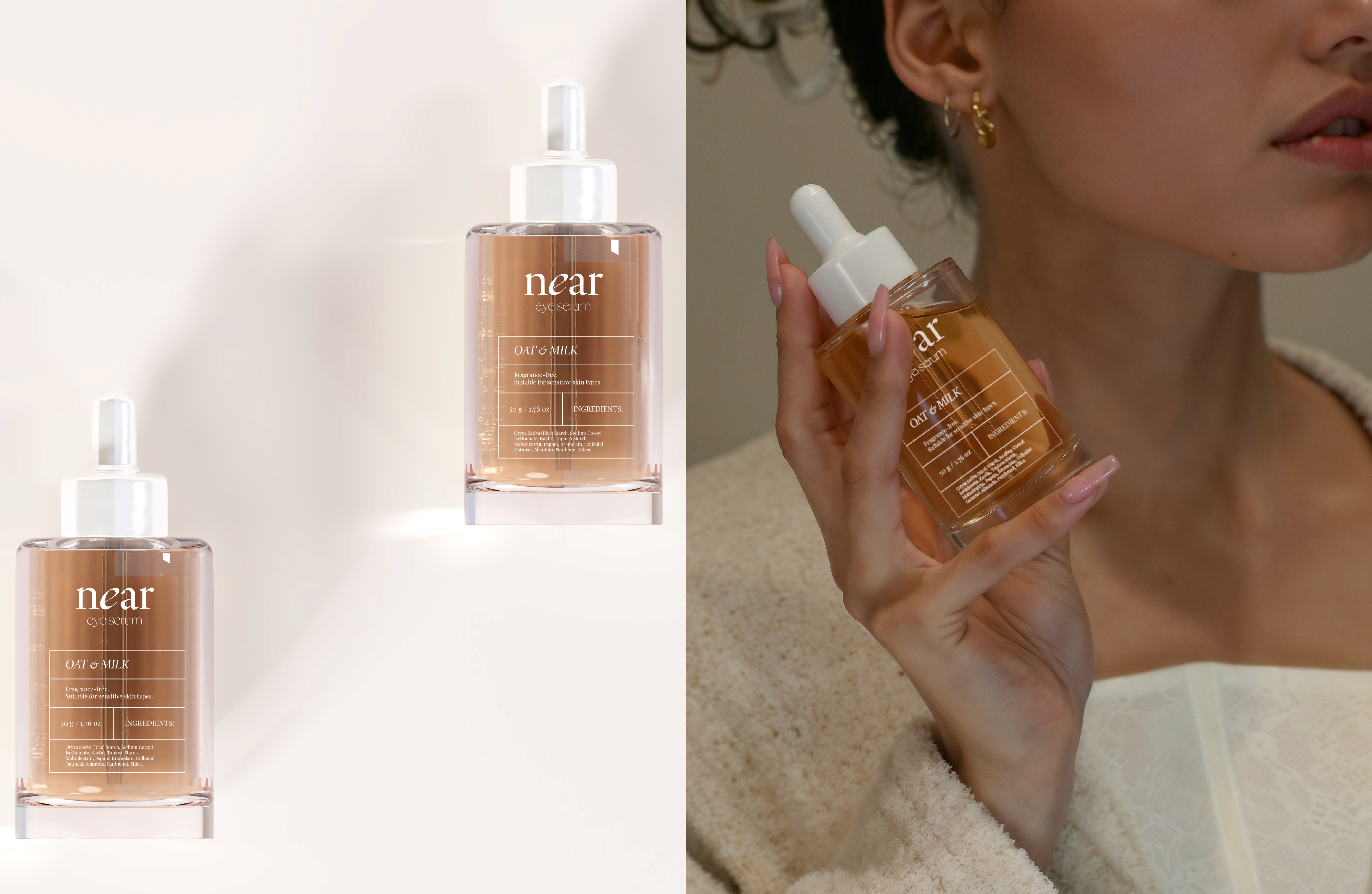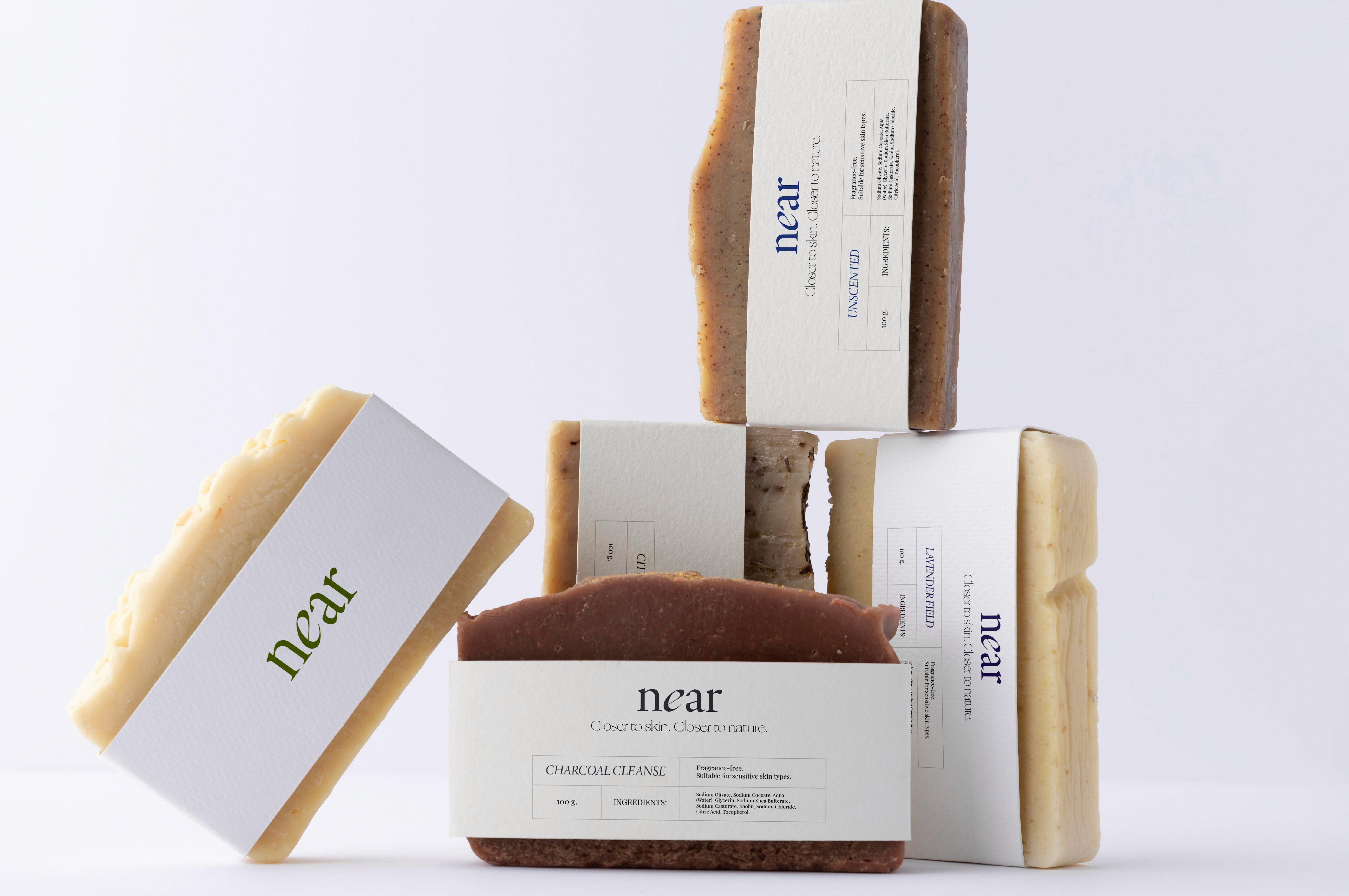 near is a natural skin care brand that focuses on gentle formulas and a simple, honest relationship with the skin. The concept is built around the tagline “Closer to skin. Closer to nature.”, so the main task was to create packaging that feels clean and dermatological, but still warm and connected to the natural environment. I designed a sleeve-style label system with generous white space, clear hierarchy and small, informative typography.